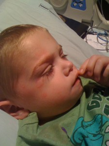 There are truly no words to explain what all this week has held for Gray and our family. Gray went into the hospital just over a week ago for part two of his second round of proton therapy. We had been prepared on paper as best as we could by Gray’s nurses and doctors for what would happen this week and what the possible side effects would be but no amount of words or explanations could have prepared us for what we have dealt with over the last seven days. The week started off rough when the nurses were simply trying to place Gray’s second picc line and something went wrong. As they attempted to place the picc line Gray suddenly turned bright red then just as quickly his entire body turned white and his blood pressure dropped to a dangerous level. Gray started coughing violently. We were ushered out of the room and the nurse went in search of the doctor. It was chaotic, frantic and very very scary. The nurse, the doctor and several OU Medical students all came back rushing into Gray’s room. Moments later the nurse came back out and said that Gray was OK but when we re-entered the room they had placed Gray on oxygen and Gray’s skin from the top of his head all the way down past his shoulders was broken out in petichia, which are tiny bruises that form under the skin. Sigh. I think it goes without saying that not only was this one of the scariest moments we’ve had thus far in Gray’s treatment but it was also overwhelming to think that this was day one in the hospital for the entire week…and we hadn’t even began treatment yet!! It was hard to calm down after that morning. After running some tests we found out that Gray’s picc line had been placed too close to a vital vein and so when they flushed the line it caused the serious reaction. Fortunately, they were able to remedy the problem without having to totally replace the line. Almost immediately after beginning treatment that afternoon Gray began experiencing side effects. Overnight his fever spiked to over 102 and his blood pressure dropped yet again to an extremely dangerous level. His blood pressure was 75/24!! The doctors made the decision to stop Gray’s treatment for about an hour and see if his vital signs would rebound on their own. Unfortunately, his blood pressure wasn’t returning to normal and so they had to treat him for it and then wait a bit longer. Just as the doctor was coming into our room to inform us they would have to take Gray to ICU because of his low blood pressure and severe side effects Gray’s blood pressure jumped back to a normal level and we were able to stay in our room and eventually begin his treatment again! Thank you Jesus! We truly credit Gray’s sudden rebound in blood pressure to the prayers being offered up on his behalf! The entire week of treatment continued as a roller coaster of side effects, stopping treatment, a variety of medication cocktails and then beginning treatment yet again. Each time Gray would have an allergic reaction to his IV treatments the nurses would have to take him off of everything, return him to some form of normalcy and then as they returned Gray to treatment they would change his doses hoping that the new dose wouldn’t cause another reaction. Unfortunately, the allergic reactions continued until the very last day of treatment. Gray would spike a fever and develop rashes and spots all over his body. We would then go through the cycle of stopping treatment, treating the reaction only to put him back on the very drugs Gray was reacting to only hours later. There’s no way to express the emotions you feel as a parent to watch your child be given medicines and a treatment that makes him appear even worse and even more sick then he does on any normal day. It’s a mind game to know that, in the end, these treatments will only improve Gray’s long term health but in the moment you just want to scream “STOP!”, unhook your baby from all the tubes and wires and take him home! It’s very emotional. Then, in the midst of Gray’s treatment, we found out that a little girl who is a couple years older then Gray and who we have seen on several of our admissions at OU Children’s Hospital passed away. We had become sort of “hospital friends” with her and her family. She too had been fighting a rare form of childhood cancer and we knew that her cancer hadn’t been responding to treatment and was spreading. Unfortunately, she lost her fight. As we sat in Gray’s room watching him go through cancer treatment and fighting right along side him we couldn’t help but let our hearts sink. There’s not always a happy ending and, when it comes down to it, cancer is simply unfair. No child or family should have to endure the diagnosis, the battle or the end result. We feel so blessed to have so many praying for Gray and so much support on a daily basis, and while Madison had a strong support system as well, she is proof that what we want isn’t always what we get. It was a dark day in the hospital.
